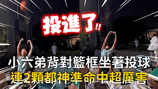 小六弟背對籃框坐著投球 連2顆都神準命中超厲害